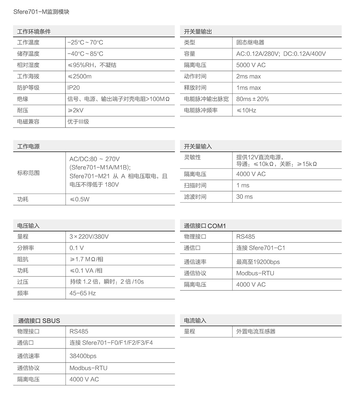 機架母線監(jiān)測單元Sfere701
