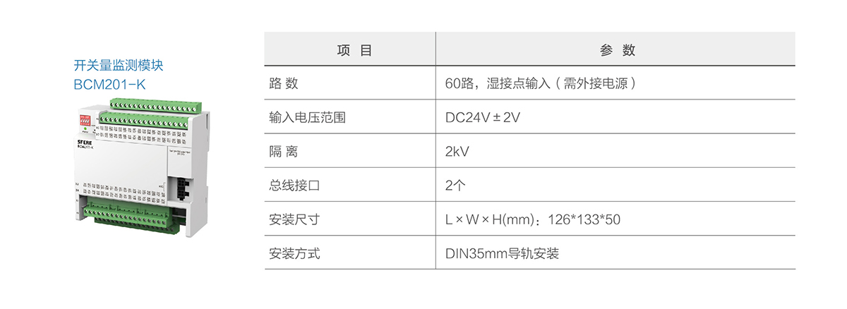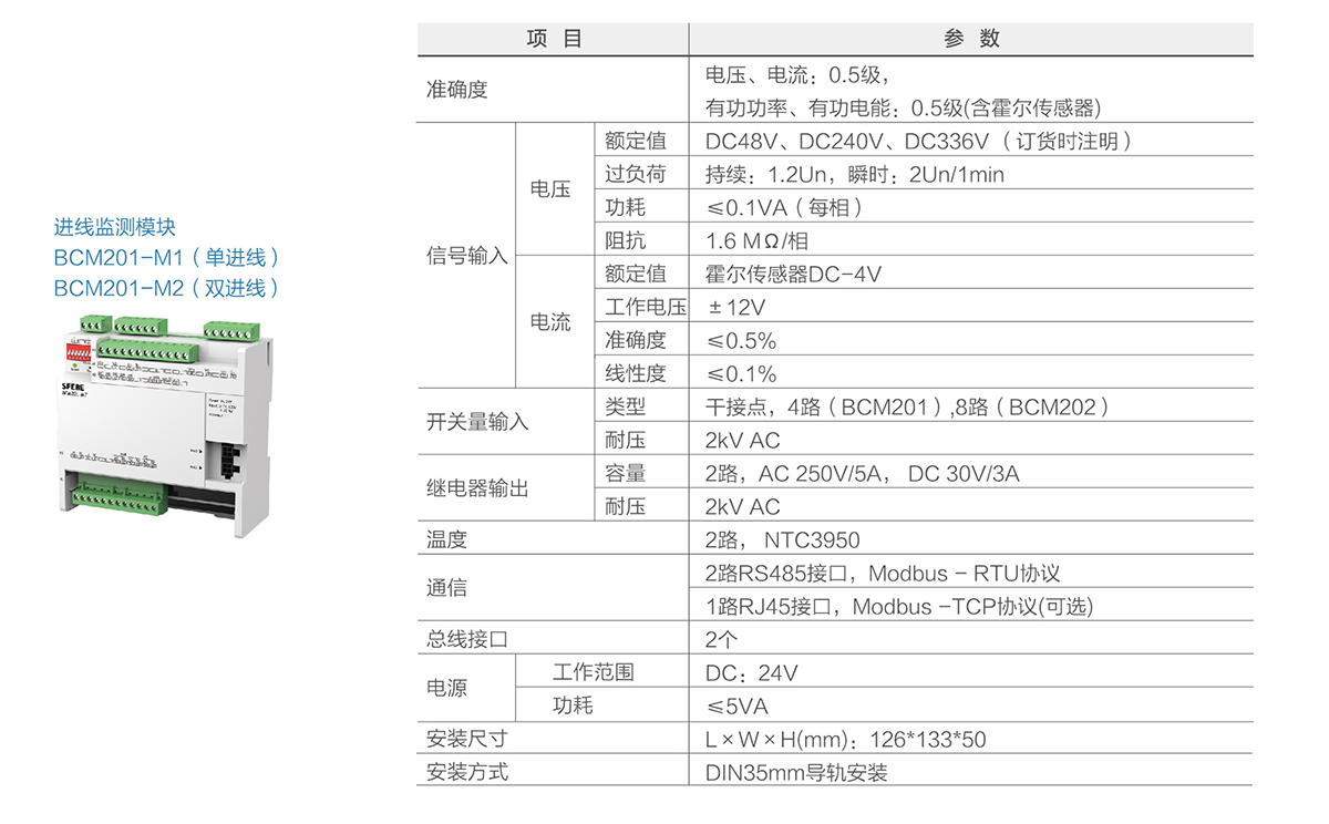 BCM201系列為直流測量。BCM系列精密配電監測單元用于監測數據中心交直流列頭柜的電力運行參數,測量進線和饋線支路的電壓、電流、電能、諧波等電參量,及所有斷路器開關狀態,具有跳閘報警功能。各輸出回路具有兩級用戶可設置的過流報警,預防潛在的電源故障。產品配置7寸彩色液晶觸摸屏,并提供以太網通信接口,方便接入其他系統。
