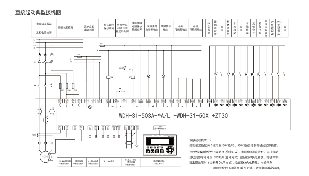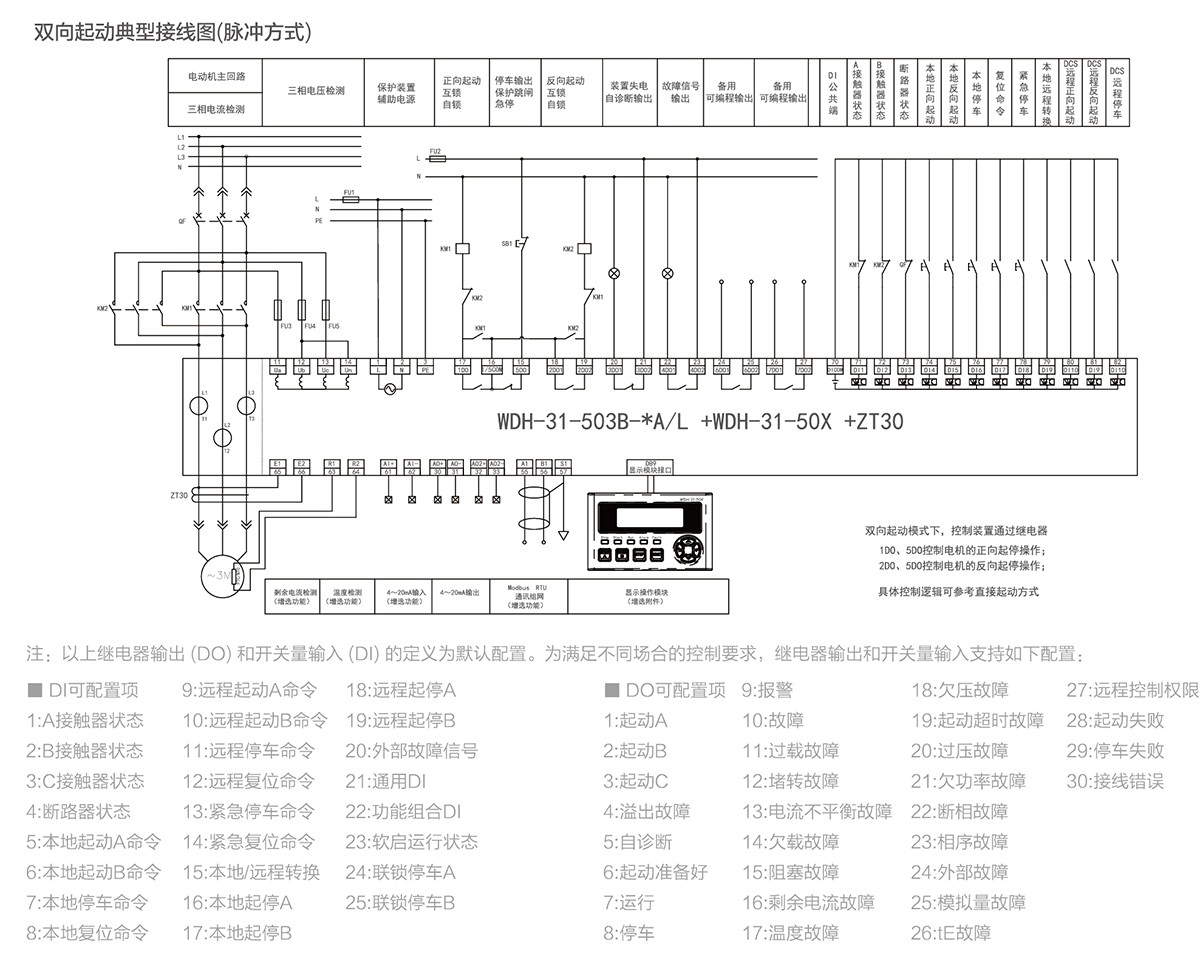 WDH-31-500電動機保護控制器最多可提供12路可編程開關量輸入(干{濕接點可選),7路可編程繼電器輸出,所有的開入開出都具備可編程功能,滿足現場不同保護控制要求所有保護功能可同時設查報警值和動作值,并可分別投退,保護參數等可由專業人員根據現場電動機的實際工況進行整定,掉電不丟失。