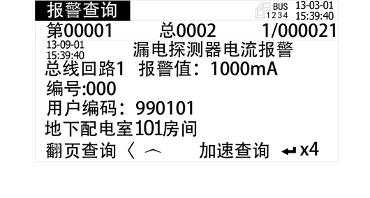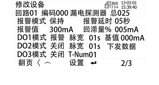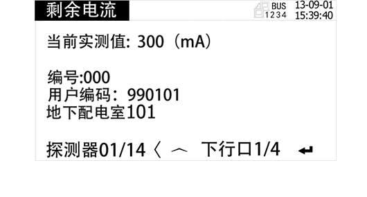 可在設備信息菜單中查詢探測器信息:各回路漏電探測器和溫度探測器在線數和總數。