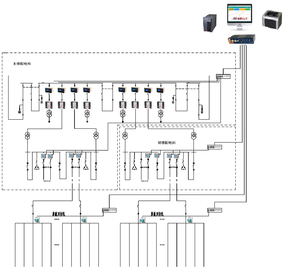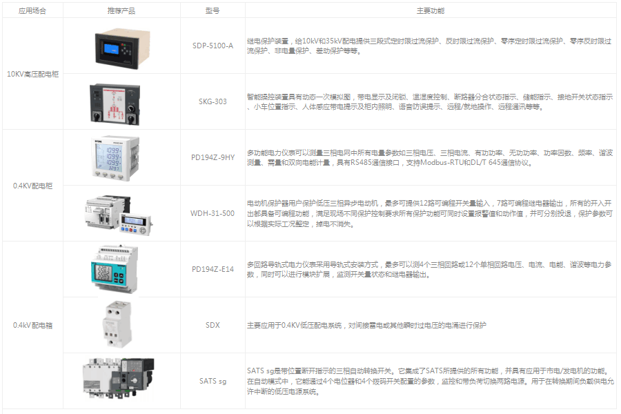 設計設備主要有:sfere系列電能質量檢測儀、WDH-31系列電動機保護控制器、SDP5100系列微機綜合保護裝置、智能數顯儀表、智能操控裝置、變壓器溫控儀、智能水表等現場設備。