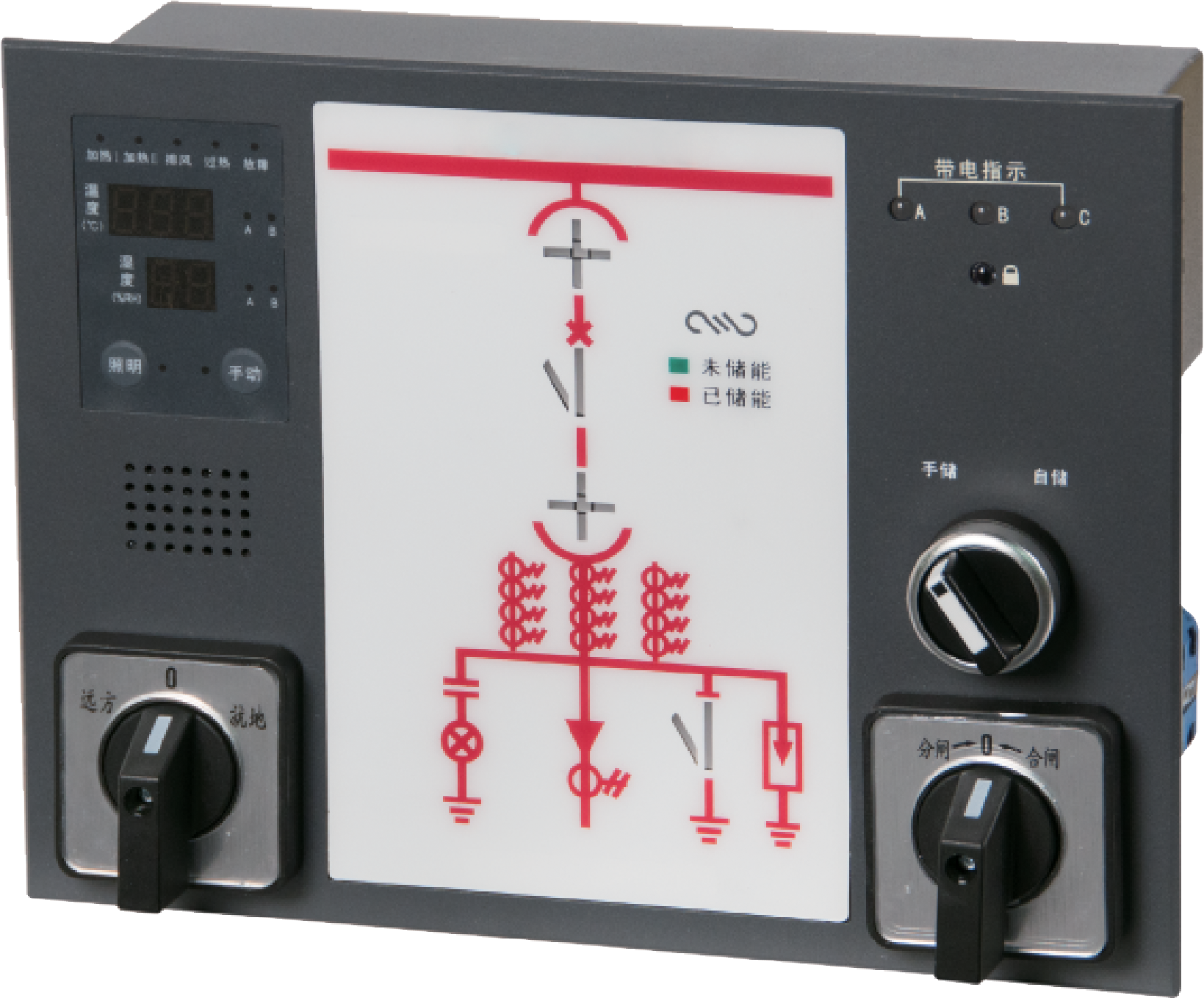 ? 帶電顯示及閉鎖、溫濕度控制、斷路器分合狀態指示、儲能指示、接地開關狀態指示、小車位置指示、遠程通信。