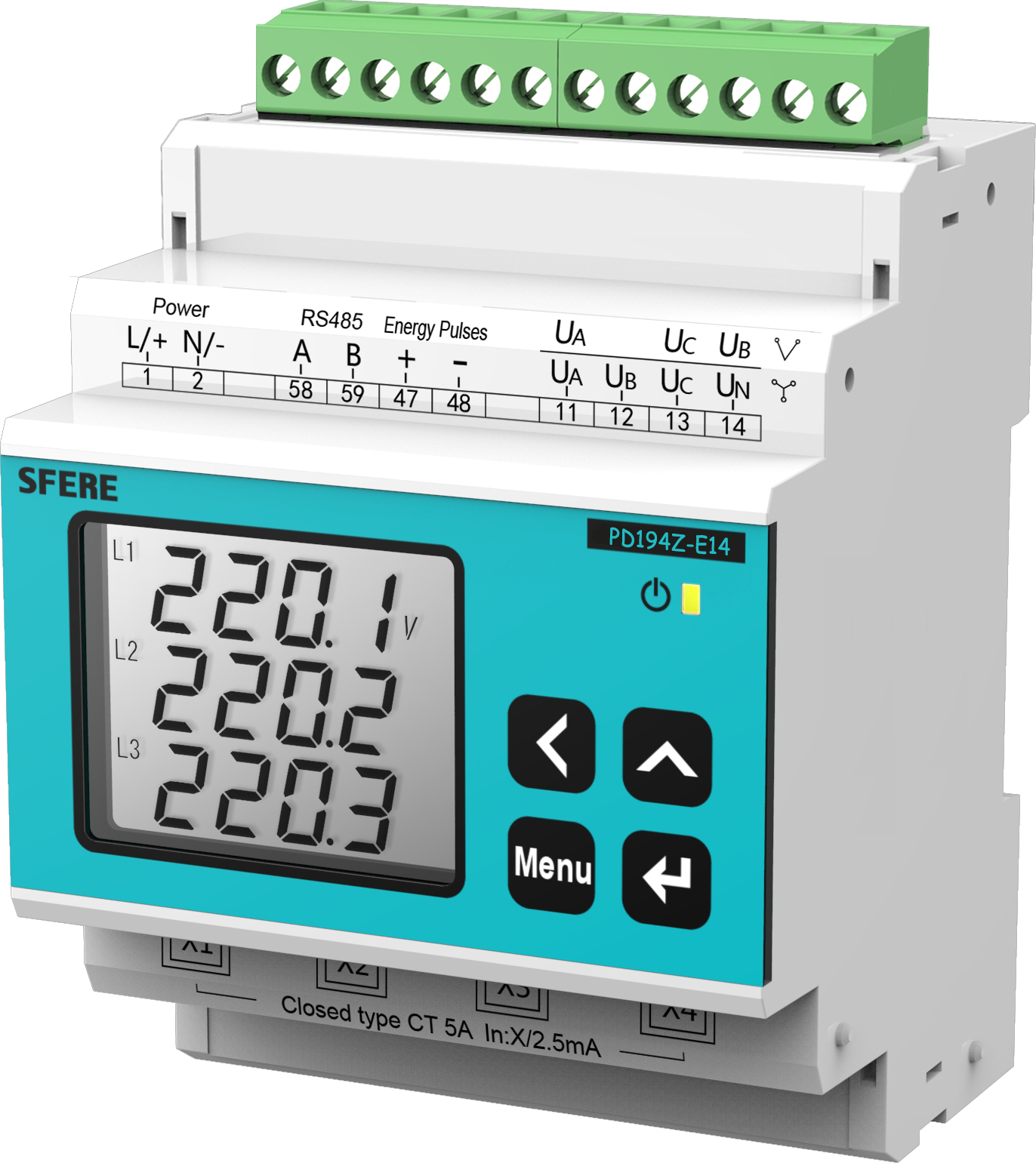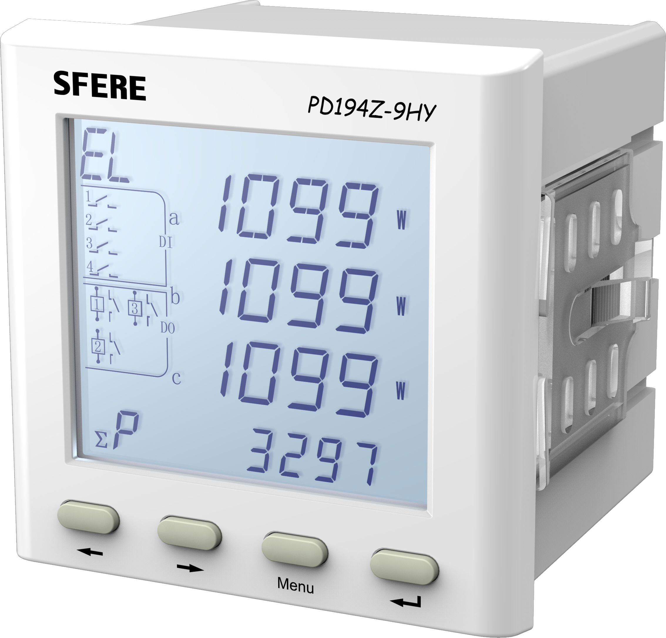 ? 三相電壓、三相電流、有功功率、無功功率、功率因數、頻率、需量和雙向電能計量。
